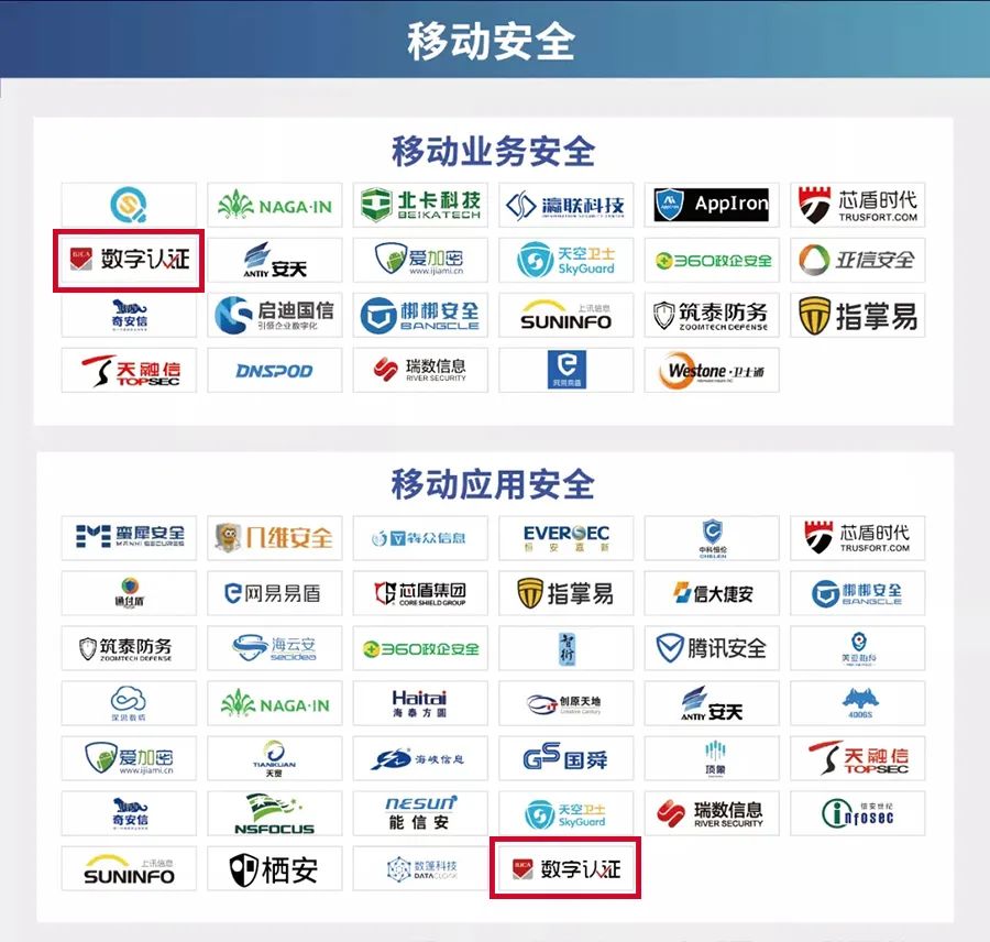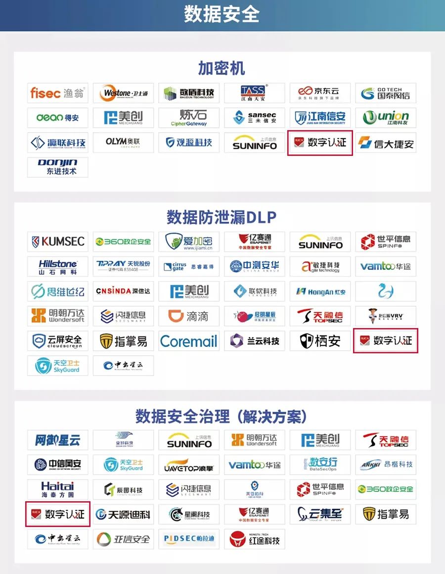 数字认证入围《CCSIP 2021中国网络安全产业全景图》多个细分领域