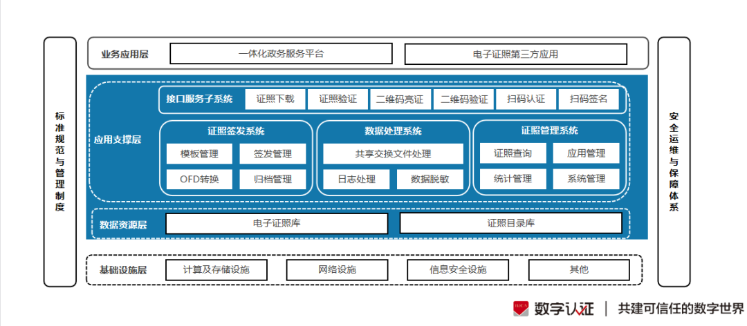 为进一步推动互联网+政务快速发展,为数字政府建设添翼助力,北京数字认证股份有限公司(简称:数字认证)严格遵循电子证照国家标准和相关行业标准,打造统一的电子证照服务系统,涵盖证照签发、证照管理、数据处理、接口服务等功能,同时以核心密码技术为支撑,解决可信签发、信息真实、可信验证、互通互认等方面的难题,实现电子证照全流程闭环管理和应用,加快推进政务服务“一网通办”。