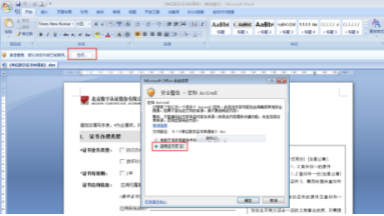 因为有些组件在Office2007中被拦截了,需要启用一下。先点击高亮条(安全警告)中的“选项”--选择“启用此内容”--点击“确定”。
